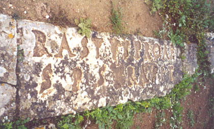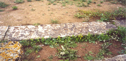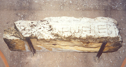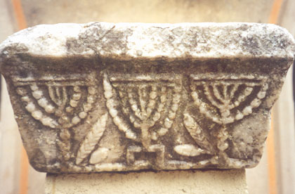 Το μαρμάρινο επίκρανο στο οποίο είναι χαραγμένες τρεις εβραϊκές λυχνίες